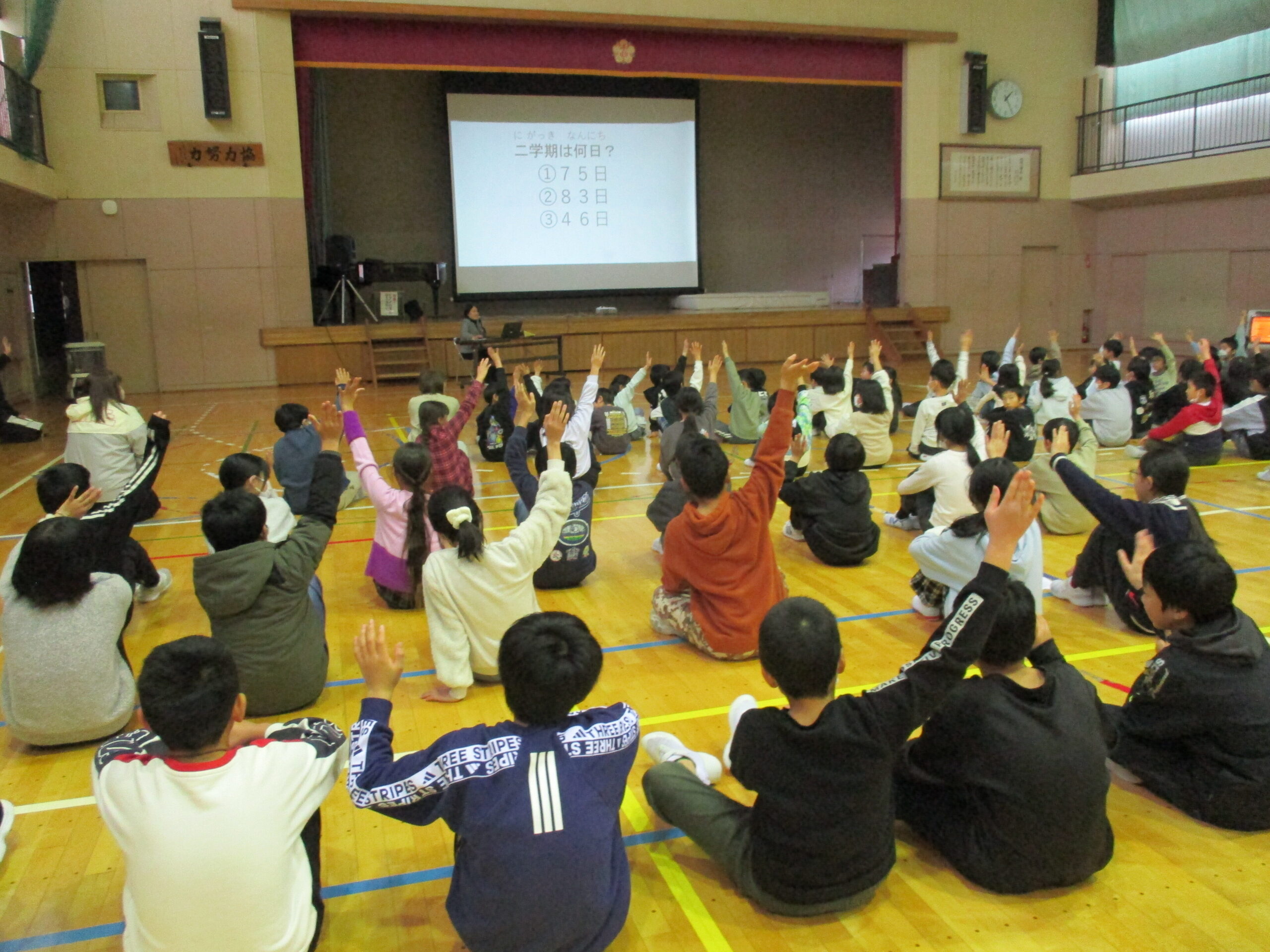 83日間の2学期が終わりました。暑い夏の日からスタートして、秋を過ぎ、寒い冬と3つの季節をまたいで締めくくられる2学期。たくさん学習し、友だちとたくさん遊び、たくさんの行事を経験し、新たな発見をたくさんした2学期でした。冬休み中も、体調を崩さず、新しい年を迎えてほしいと願っております。保護者の皆様、地域の皆さま、2025年も大変お世話になりました。2026年もよろしくお願いいたします。よいお年をお迎えください。