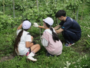 2025年6月6日(金) 6年生 総合「小諸特産プロジェクト」ぶどうの手入れ作業