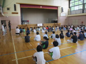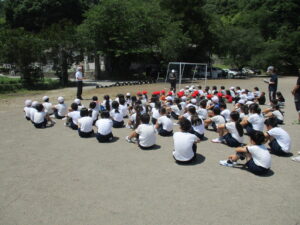 今日は休み時間に、児童に知らせずに避難訓練がスタートしました。放送をよく聞き、自分達で考えて、避難することができました。高学年は低学年のお世話をしながら避難し、低学年も高学年の指示で避難することができました。いざというときの心の備えも必要ですね。