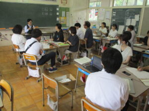 信州大学の先生をお呼びして、授業研究会を行いました。市内の先生方、信州大学の学生の方も来ていただき、授業の様子を共有したりご助言をいただいたりしました。また明日からの授業に活かしていきたいと思います。